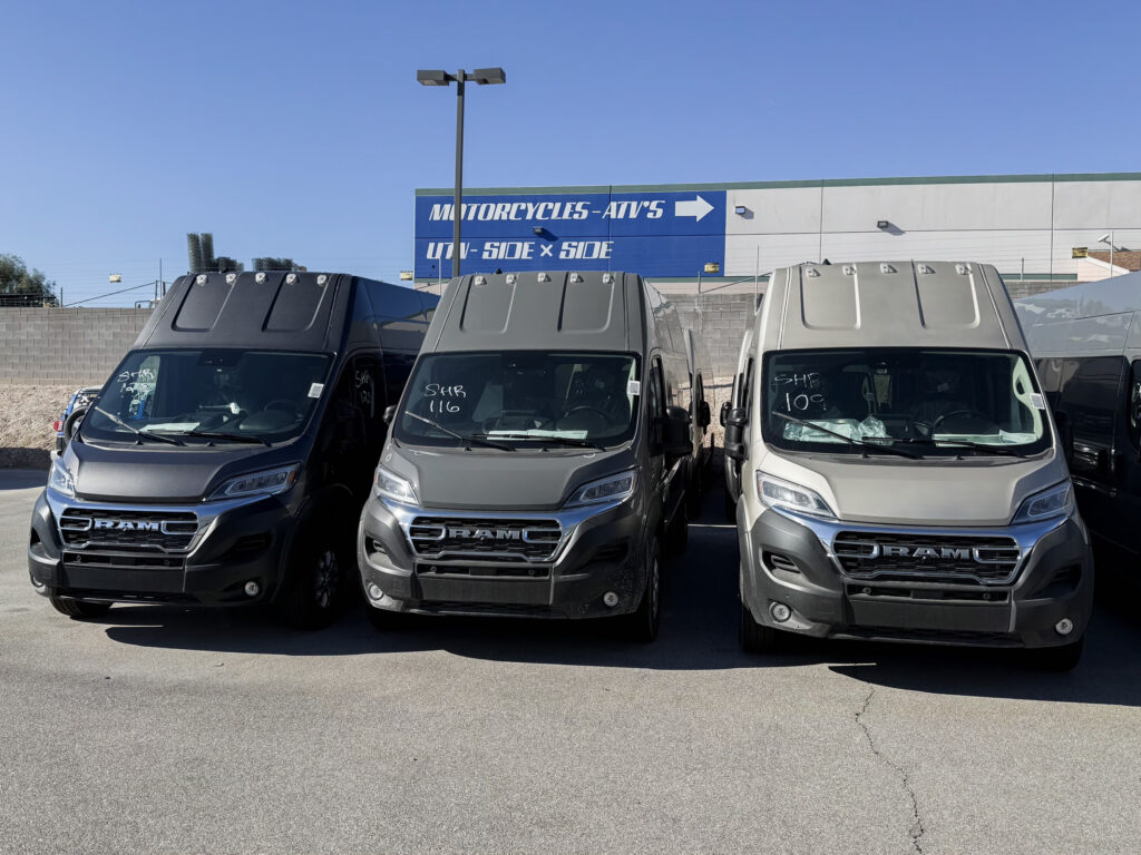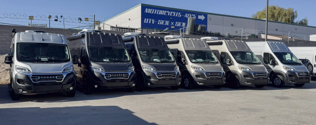 To finalize our choice of color for our Noovo, we drove down to the headquarters in Las Vegas. We met Sloan (our factory rep), who we had met before at the Tahoe RV show in October, and he gave us a tour of the factory, and he showed us the vans.