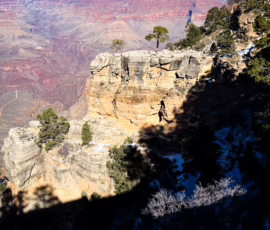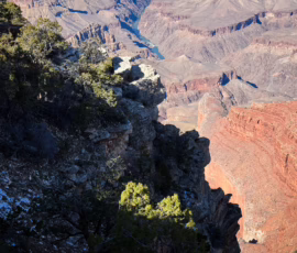 We’ve been to the Grand Canyon before, but this time it was to work on my project, 47 Views of the Canyon, which I had started a few months ago. The basic idea is to shoot views of each promontory, or point, along the rim trail that marks the edge of the South Rim. I’d already spent a long day and a half on my last trip shooting from the Visitor Center and then all the way to the right (requiring driving to get to the farthest points) but this time we were heading leftward, on foot.
