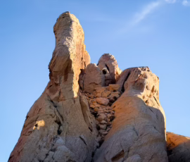 We did two of the trails, or at least a combination of trails, jumping from one to the other. Both of the trails, White Domes Loop and Fire Wave/Seven Wonders, are at the end of White Domes Road, the dead-end road that juts north within the park. Note that the Fire Wave/Seven Wonders trail is close during the summer. It gets extraordinarily hot during those months and, back when the trials used to be open, people were going in unprepared–with the usual results.